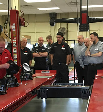 20 members of staff from wheel servicing equipment specialist Pro-Align, recently headed to Hunter’s head office in St Louis, Missouri, for an intensive week of product and service training. Reflecting the growing size of the business, the delegation was the largest ever to have been sent by Pro-Align, with the majority of the group visiting
