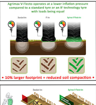 Since its introduction to Ireland and launch at last year’s National Ploughing Championships, the Agrimax V-Flecto tyre range from BKT Tyres continues to turn heads among Irish farmers and contractors. This Agrimax V-Flecto tyre is BKT’s version of a V.F. Technology (very high flexion) tyre designed for high-power tractors used both on and off the