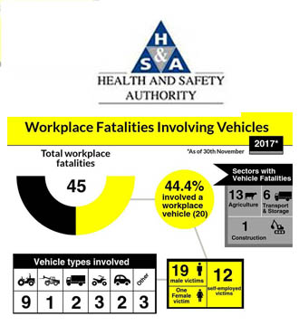 The Health & Safety Authority (HSA) continues to be concerned about the high level of injuries being reported as a result of unsafe practices around the use of work-related vehicles and will be targetting this sector in 2018/ The HSA says its will be will be targeting: • work related vehicle safety issues related to