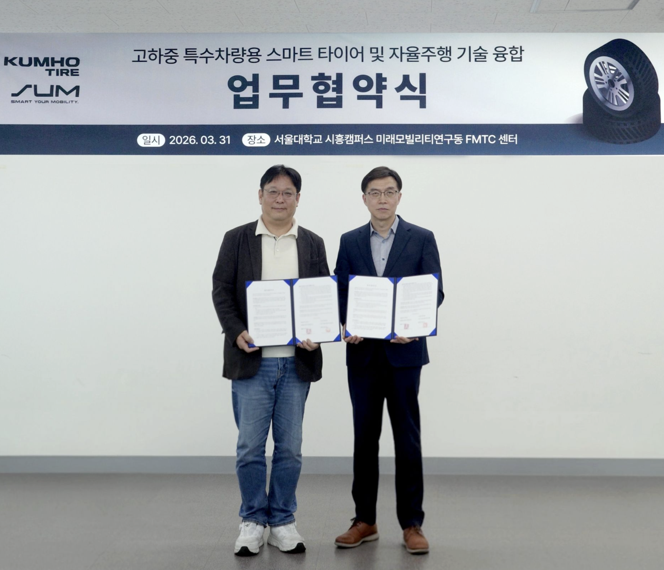 Kumho Tire has signed a memorandum of understanding (MOU) with SUM (Smart YoUr Mobility) in South Korea to advance smart tyre and autonomous driving technologies.