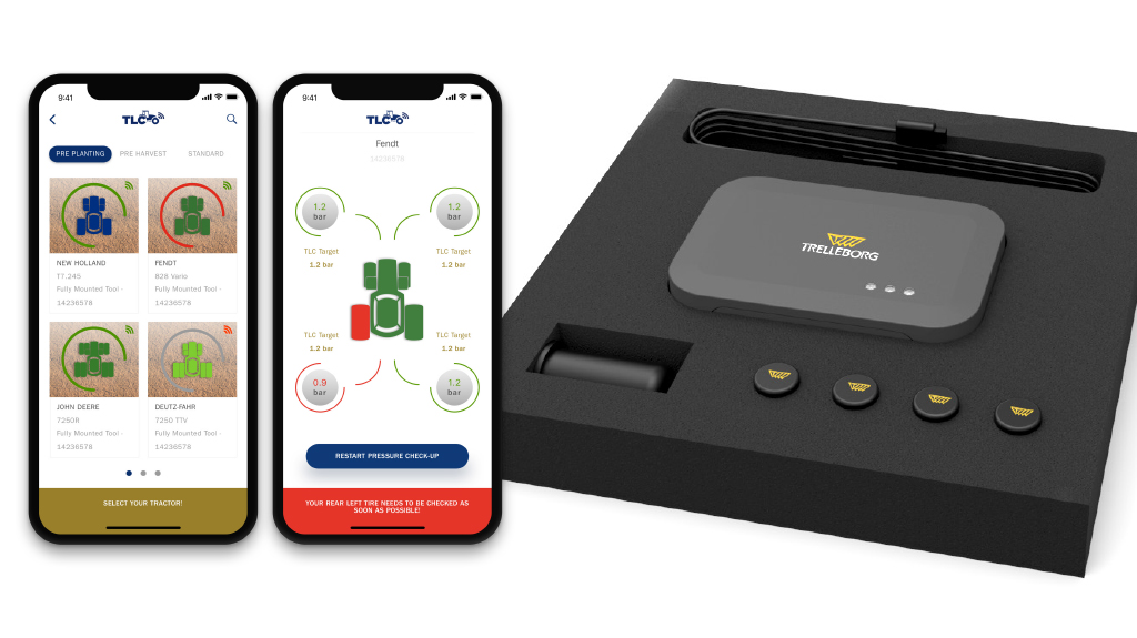 Trelleborg tells us that its new Trelleborg TLC Plus App is an advanced, sensor-based check-up system, which measures potential tyre pressure gaps between the optimum pressure and the actual tyre inflation pressure and relays this information via wireless connectivity to the farmer’s mobile device, or their PC.